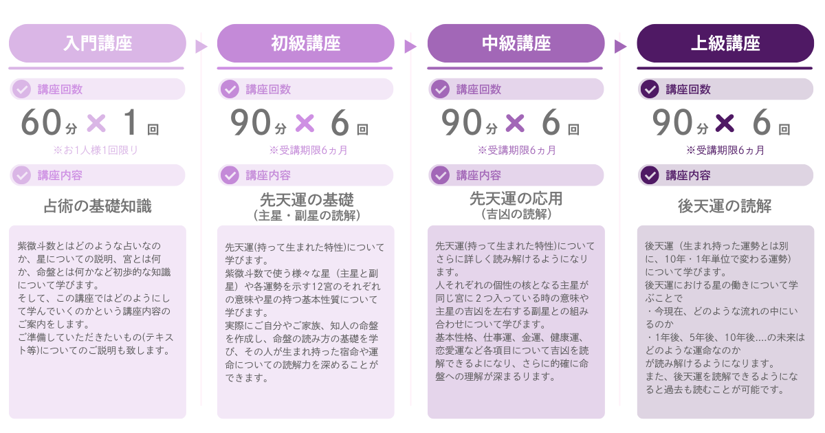 全日本紫微斗数協会の認定講師がマンツーマン形式で講座を行います。