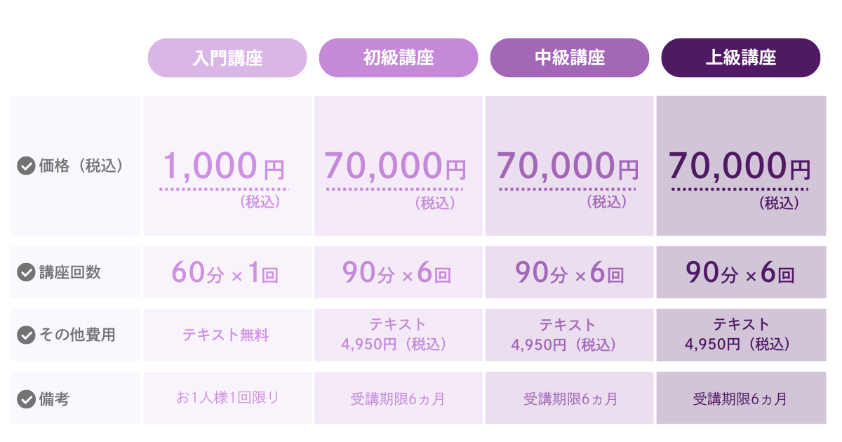 ※教材は全日本紫微斗数協会発行の公式テキストを購入して頂きます。