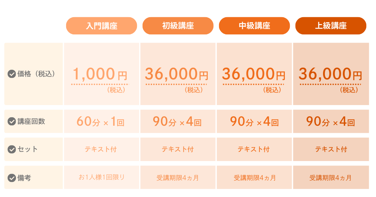 中級レベルになれば、すでにやっているお仕事にプラスのサービスとして提供出来るようになります!